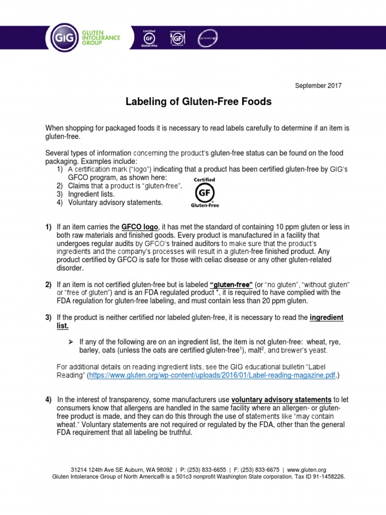 Gluten-Free Labeling of Foods | FDA On August 2, 2013, FDA issued a final rule defining “gluten-free” for food labeling, which is helping consumers, especially those living with celiac disease, be confident that items labeled ... 4 Steps to Reading Labels on a Gluten-Free Diet - Spoonful Blog For someone with a mild intolerance, a gluten-free label with oats is okay, but for celiacs, you'll want to steer clear. Step 3: Check for Gluten-Containing Ingredients If the product does not have a gluten-free seal or is not marked gluten free, it's time to break out the readers and examine the label yourself. PDF Tips for Gluten-Free Label Reading Gluten-Free Label Reading 2 How to determine if a product is gluten-free. For products which are neither certified nor labeled "gluten-free", it is essential to read the ingredient list. If any of the following are present on the ingredient list, the product is not gluten-free:
